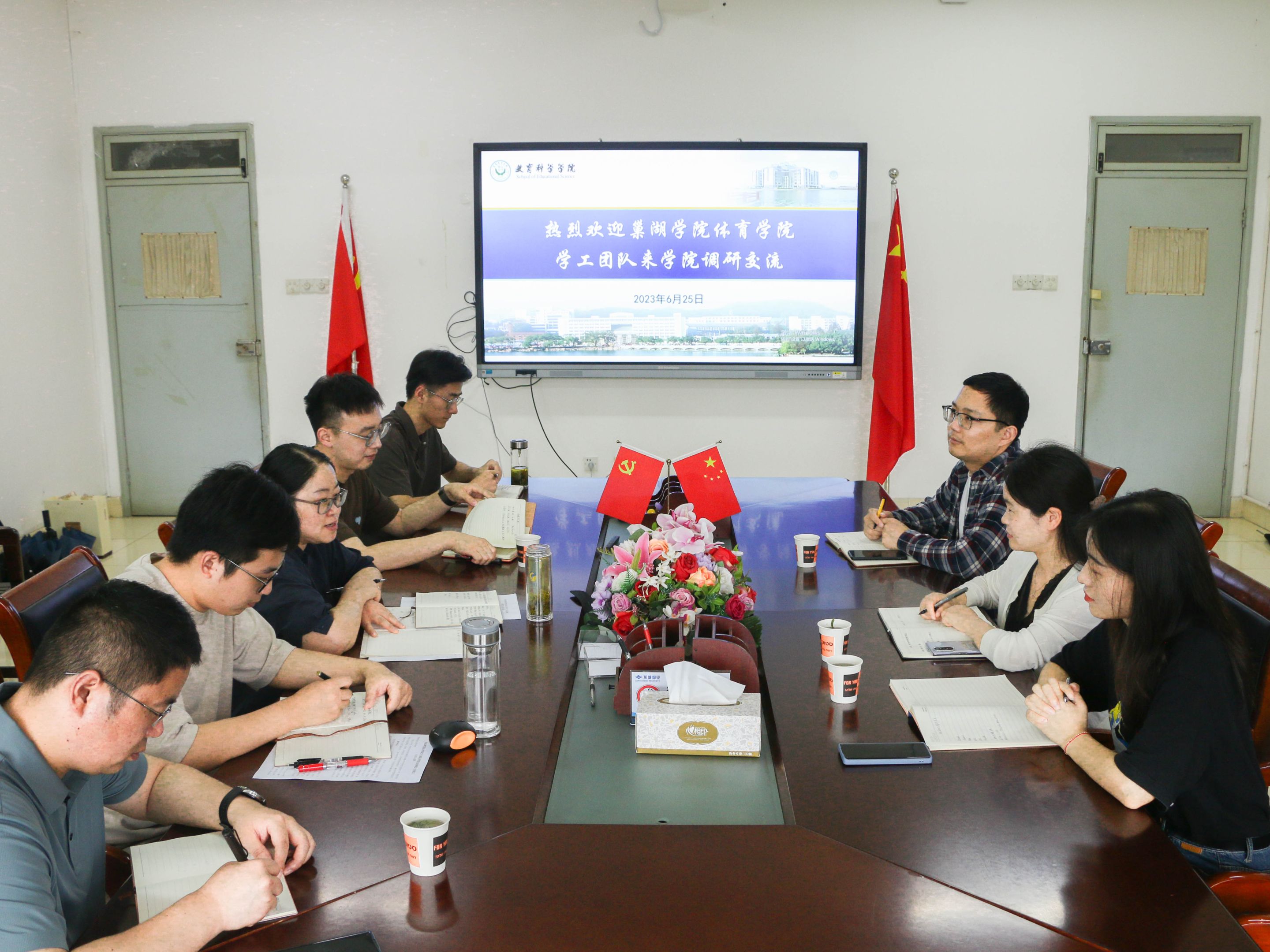 6月25日上午,巢湖学院体育学院党委副书记朱春华、院团委副书记杜锐、辅导员陈荣光等人来我院调研交流。HJC黄金城登录党委副书记杜凤、体育学院团委书记黄彦锴、HJC黄金城登录团委书记张理强、副书记付银行、辅导员莫大贡等参加了交流会。