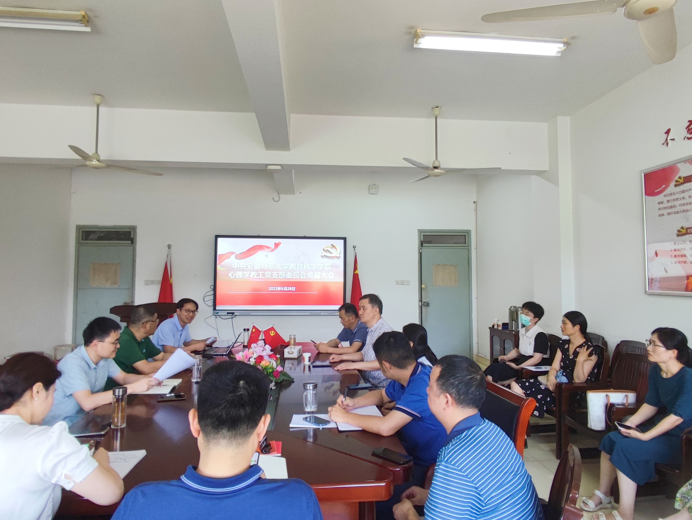 心理学教工党支部于6月28日下午在学院308会议室召开支部委员会换届选举大会。大会由心理学教工党支部书记王礼军主持,全体支部党员教师参加会议。