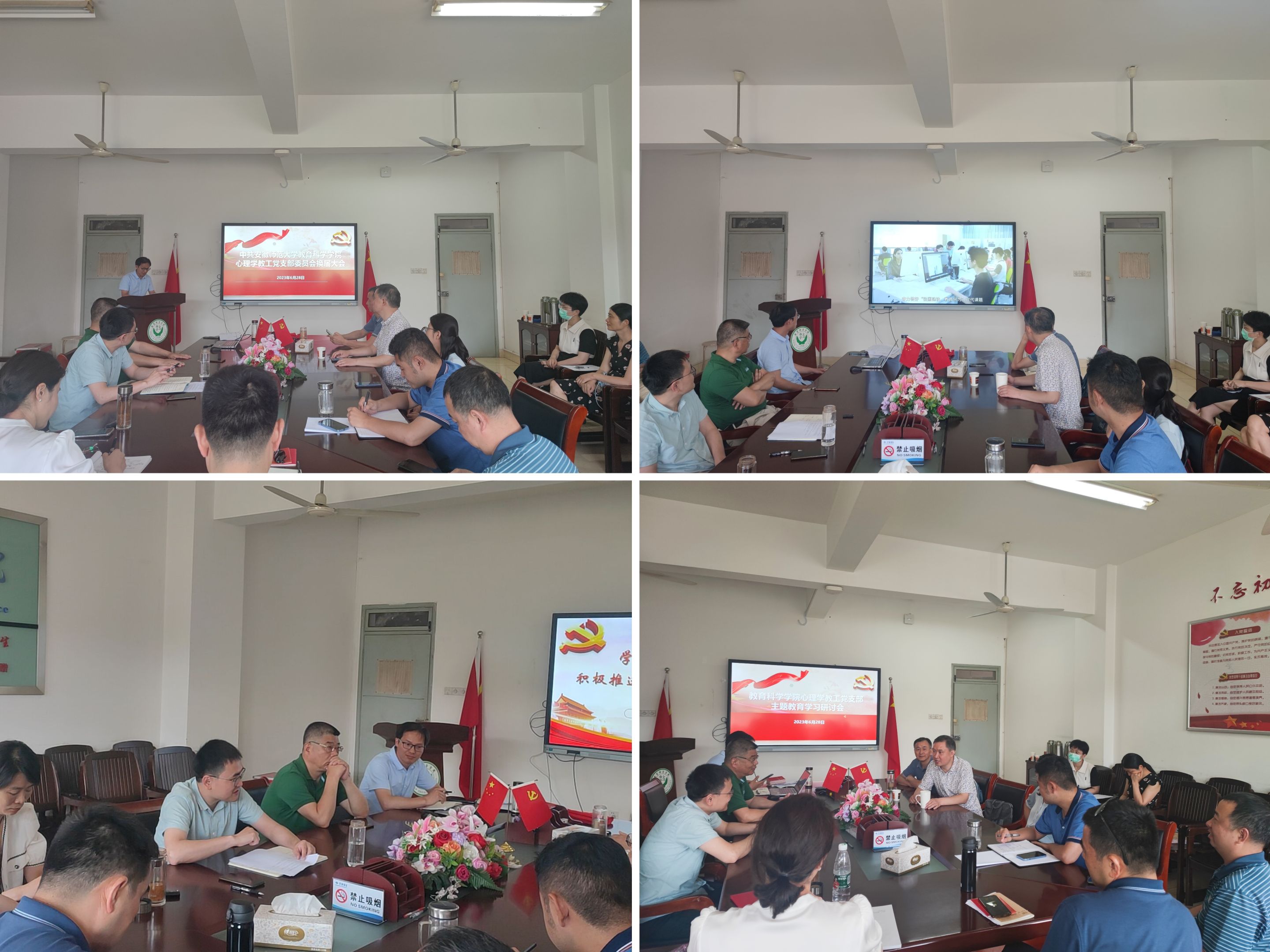 换届选举工作结束后,全体与会党员开展了一次主题教育学习研讨会,并共同观看了由教育部思政司主办的“铸魂增智育新人正风促干书新篇”2023年高校党组织示范微党课展播。在新一届支部委员会的带领下,心理学教工党支部将继续凝心聚力、振奋精神,团结心理学专业全体师生扎实工作、开拓创新,努力开创学科和专业发展的新局面。