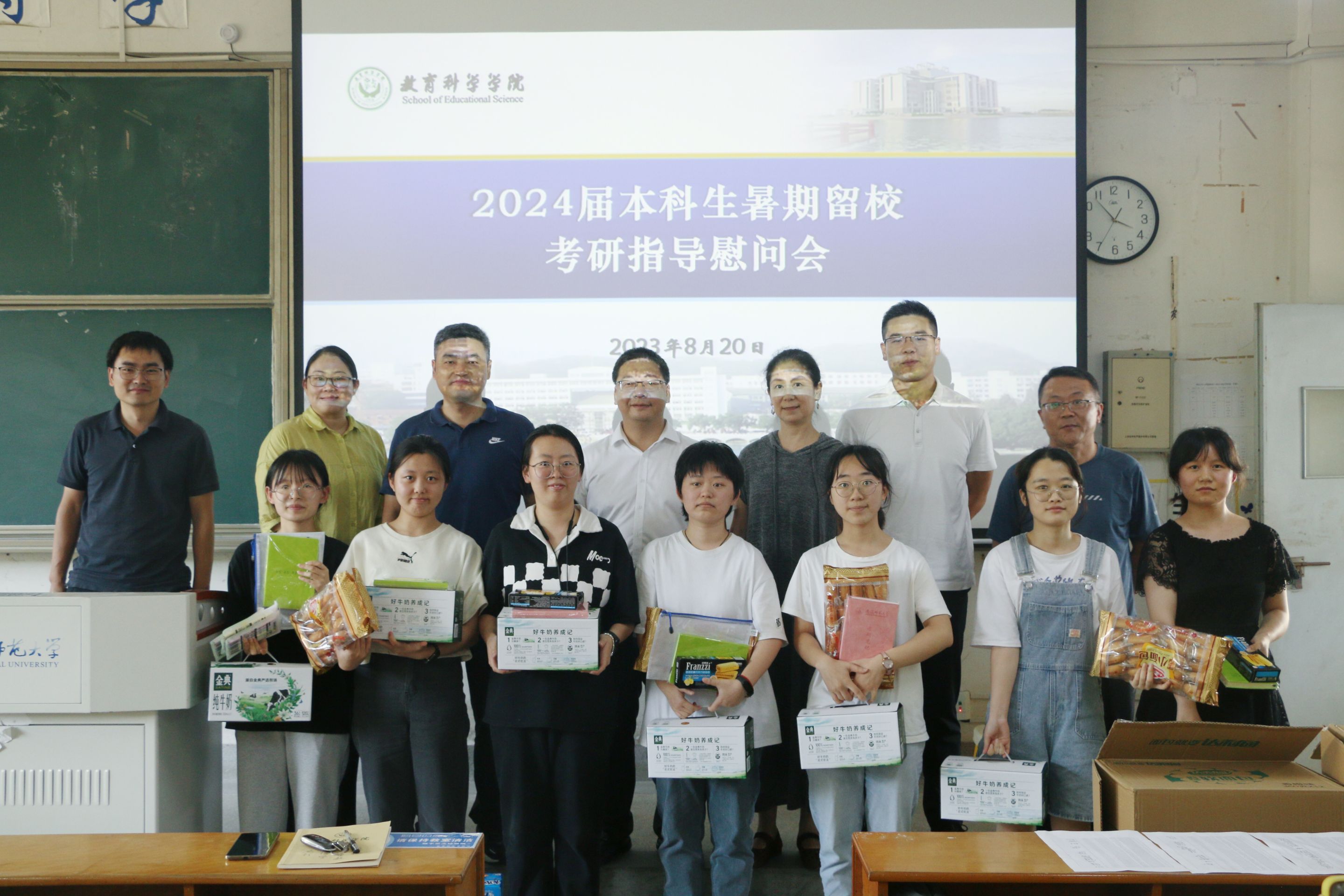 学院领导向暑期留校考研的学子们送上慰问品,期望同学们在接下来的备考过程能科学合理有效,鼓励同学们集中精力以确保顺利完成自己的考研旅程,为学院争光,为自己喝彩!