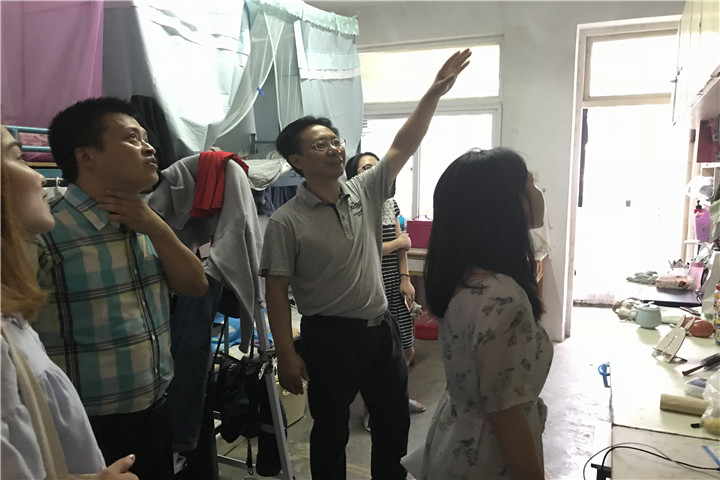 在走访的过程中,方泓等一行人深入寝室,细心了解寝室内部的空调,照明等一些生活内容,领导们梳理了暑期留校的安全隐患,就用电、交通等与生活戚戚相关的安全问题和同学们一起开展讨论,排查宿舍中可能存在的用水用电等安全隐患。此外,方泓和聂竹明还询问了暑期留校的同学有关生活上的诸多事宜,例如日常就餐、用水用电问题,并强调留校期间应当遵守规章制度,树立安全意识,合理安排假期,随时与留校信息员老师保持联系等,确保安全度过暑假。