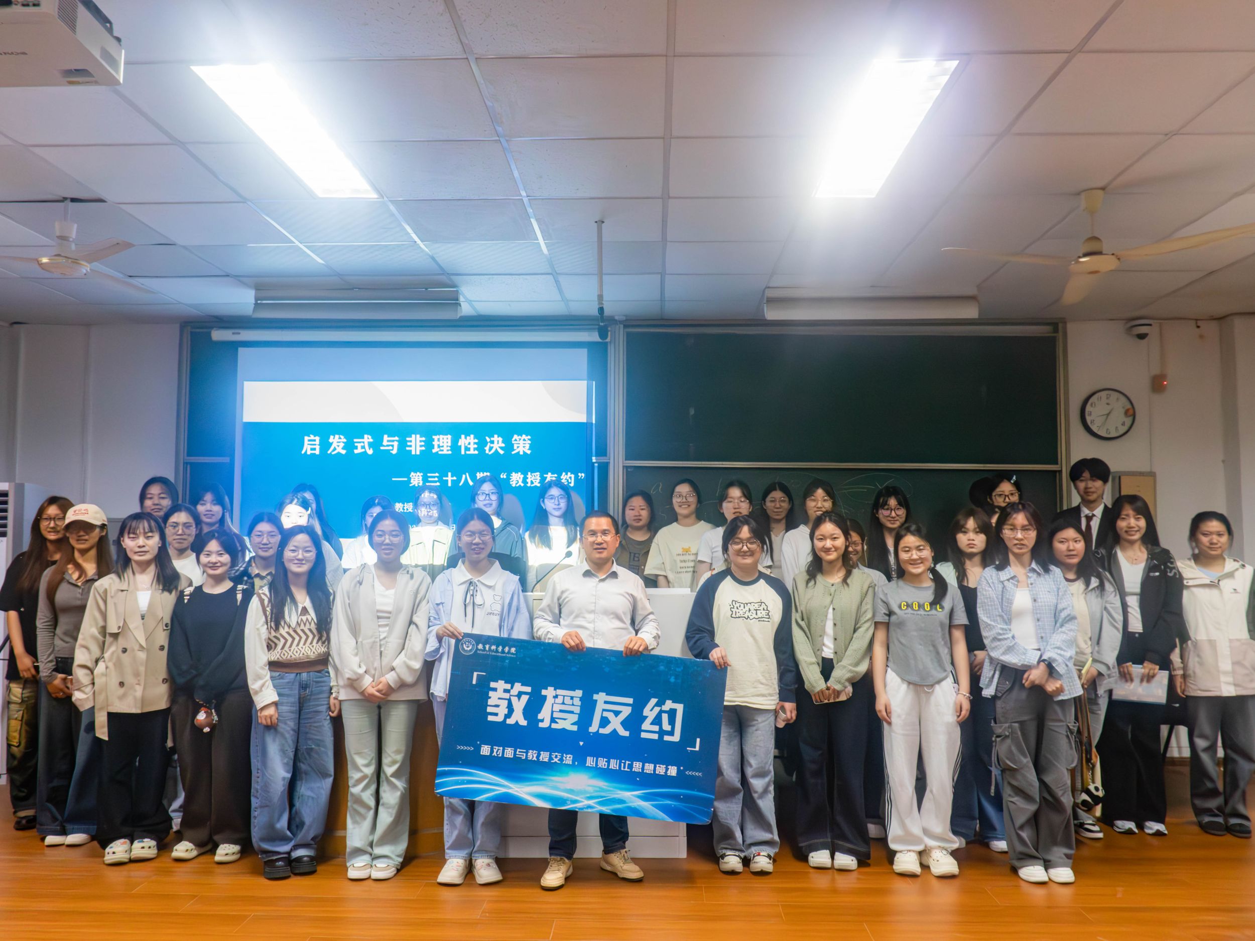 本次“教授友约”活动让同学们深入理解决策的奥秘,为大学生在未来面对选择时规避非理性因素、做出理性决策提供了有力指引。“教授友约”活动有效促进了师生交流,营造了良好的学术氛围。教科院将持续推进此类活动,助力学生全面成长。