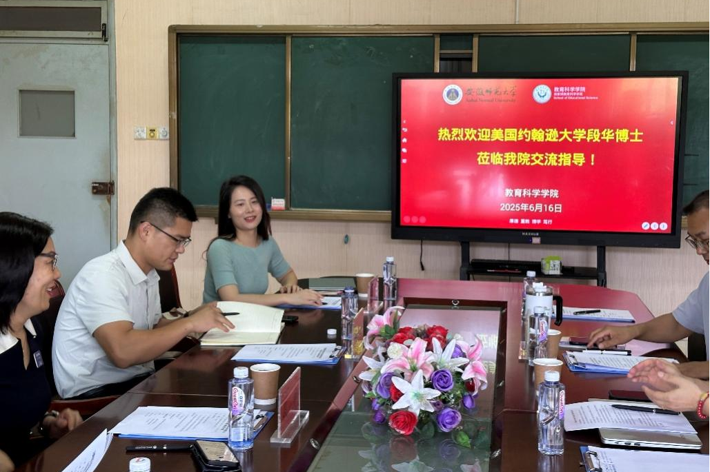 为深化我校与美国约翰逊大学合作举办的现代教育技术专业硕士研究生教育项目,提升办学质量,HJC黄金城登录于6月16日下午在408会议室成功举办中美合作项目座谈交流会。美方项目负责人、约翰逊大学国际关系及国际教育主任、泰普拉教育学院副教授段华博士应邀出席交流。