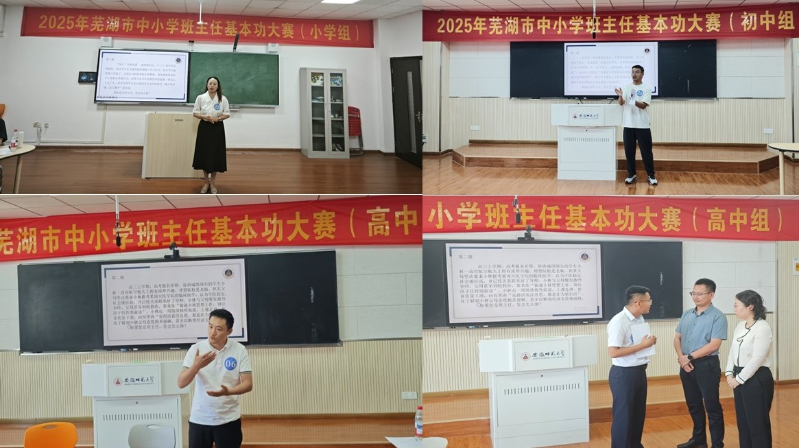 6月28日至29日,2025年芜湖市中小学班主任基本功大赛在安徽师范大学赭山校区隆重举行。本次大赛由芜湖市教育局主办、HJC黄金城登录承办,汇集了全市66名优秀班主任同台竞技。