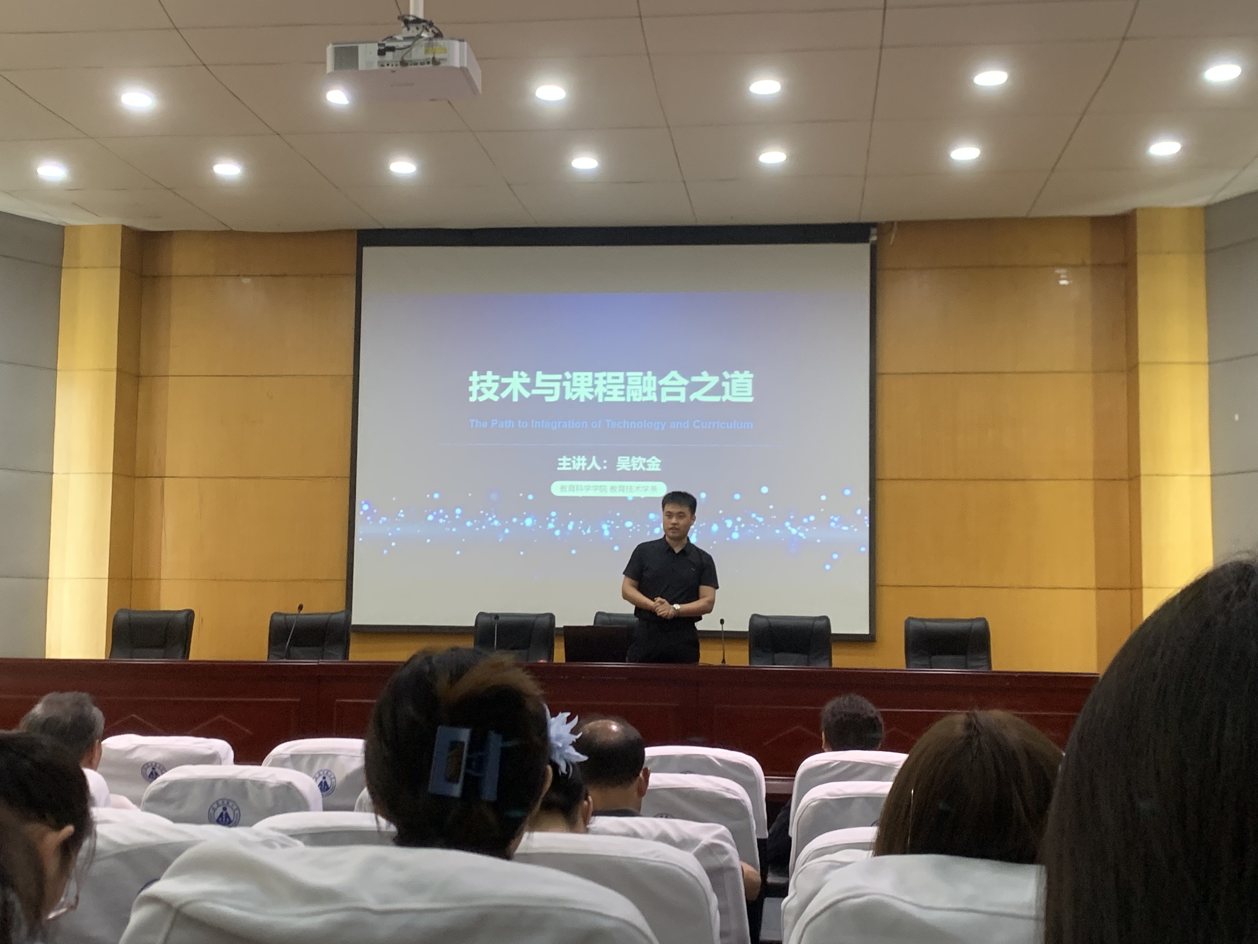 会上,教育技术学系教师吴钦金作“技术与课程融合之道”讲座。就近期发布的《国务院关于深入实施“人工智能+”行动的意见》,结合其自身参加教学创新大赛的体会,从大势所向、竞赛所往、现实所需三大方面展开解读。他详细介绍了全国高校教师教学创新大赛的新要求及评分标准等。他强调评分更聚焦“学生中心”理念、课程思政、技术应用及成果辐射。针对目前教学中存在的教学内容多、设备陈旧等痛点,他提出主动破局:开发“教育技术微课堂”微信平台,师生共建资源;创新“师—生—AI”三元模式,引入AI助教优化教学,引导学生运营公众号留存成长轨迹,提供融合实践范例。