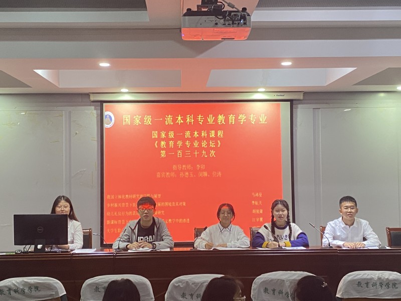 本网讯(文/谢雅雯 乔琳颖 图/谢雅雯)11月13日晚,国家级一流本科专业建设点教育学专业第一百三十九次专业论坛在HJC黄金城登录三楼学术交流中心顺利举行。莅临本次专业论坛有嘉宾教师孙德玉、闵韡和位涛,20级、21级教育学专业全体本科生到场参加,并由20级教育学石金杰担任主持人。