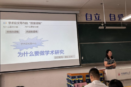 讲座中,焦丽珍主任依托其深厚的期刊编审经验,系统介绍了《现代教育技术》杂志的定位、特色栏目以及用稿倾向;随后,聚焦人工智能深刻变革教育科研的时代背景,焦主任深入剖析了教育研究在新范式、新工具涌现下的选题热点与前沿方向,强调把握“AI赋能”与“教育本质”的深度融合。尤为关键的是,她凝练提出了驱动高水平学术论文创作的系统性框架——“学术论文写作的四重逻辑”,即问题导向的精准性(靶向价值)、理论支撑的坚实性(学理深度)、论证过程的严密性(证据闭环)、创新表达的规范性(学术传播)。讲座紧密结合教育技术学学科发展动态与实践痛点,焦丽珍主任分享的宝贵经验和实用策略为师生们开展高质量研究、提升论文写作质量提供了极具操作性的方法论支持。