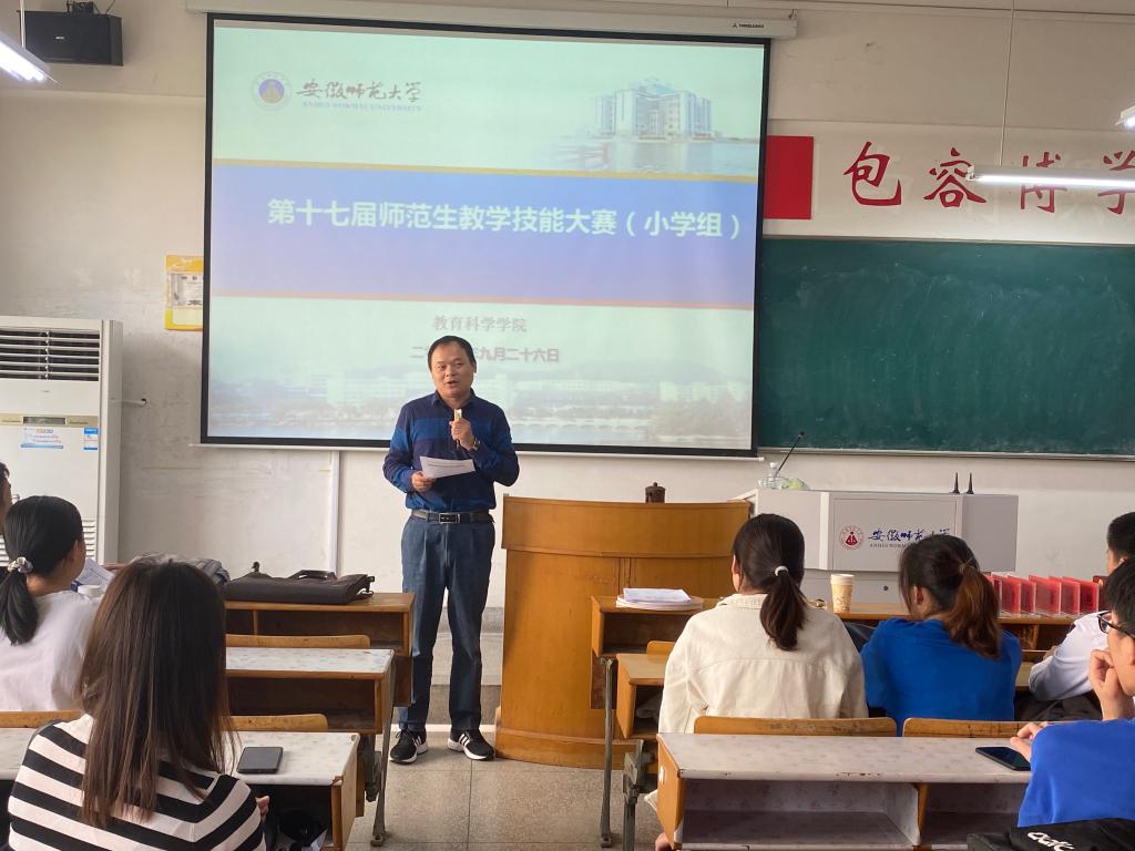 本网讯(教科院 方雯琪 刘标)9月26日,经过四个小时的激烈角逐,安徽师范大学第十七届师范生技能大赛(小学组)于赭山校区田家炳教育书院圆满落幕。本次大赛由HJC黄金城登录承办、小学教育专业负责人王芳老师和2019级小学教育专业班委会组织实施。参赛选手包括2017、2018级小学教育、教育学专业,分设语文、数学、英语、科学、道德与法治等五个学科组比赛。比赛中41位同学各展本领,在竞争中尽显师大教科风采。