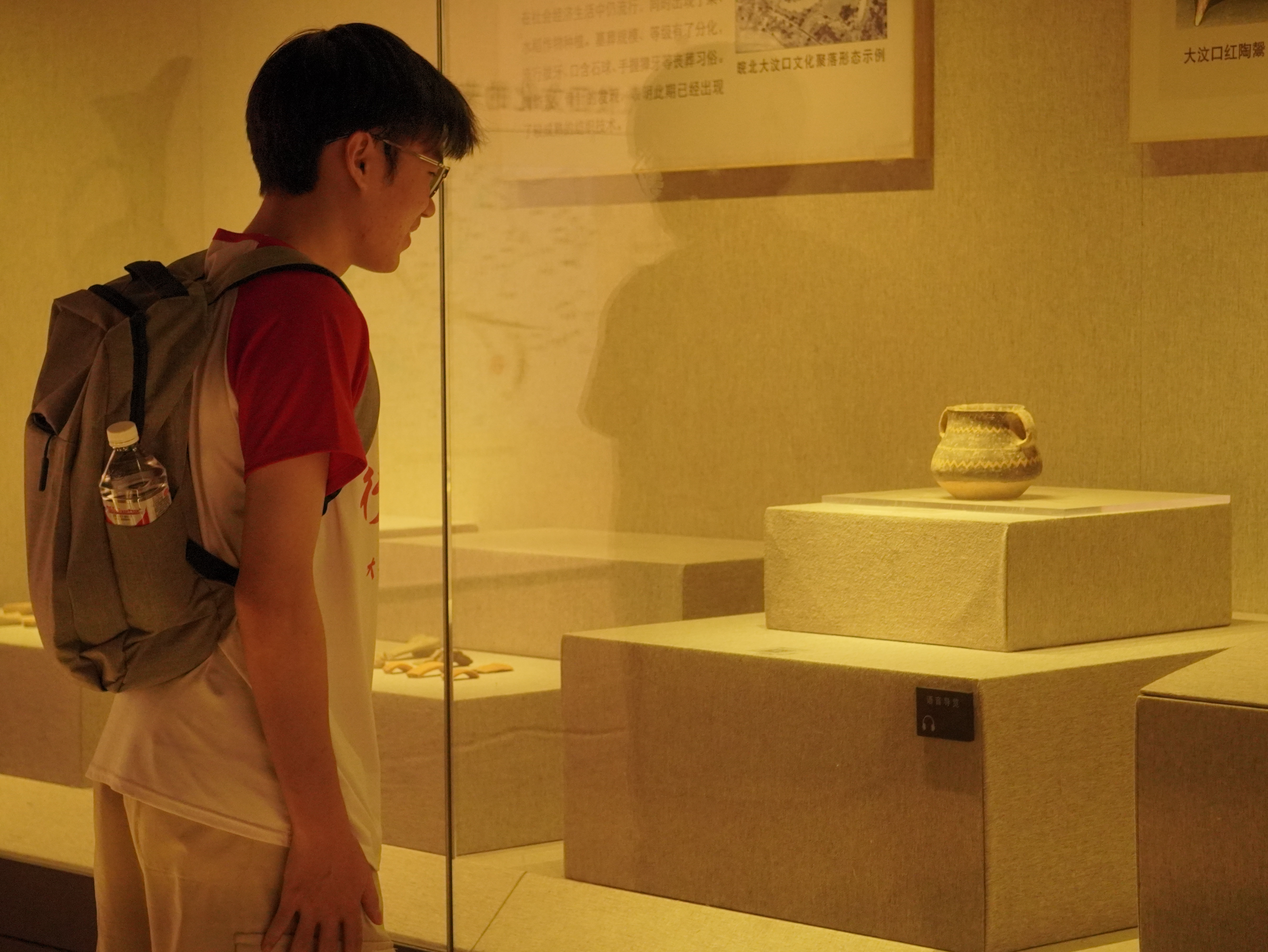 行程首站,团队走进六馆两中心内的太和县博物馆。馆内丰富的出土文物、详实的历史资料和生动的场景复原,为队员们展开了一幅太和从远古文明曙光到近代发展变迁的壮丽画卷。成员们认真聆听讲解,驻足凝视展品,深刻感受到脚下这片土地深厚的文化积淀和独特魅力,也更加坚定了他们传承和弘扬优秀传统文化、助力乡村文化振兴的责任感与使命感。队长曹藤表示:“作为支教者,理解和尊重当地文化是有效开展教育工作的前提。