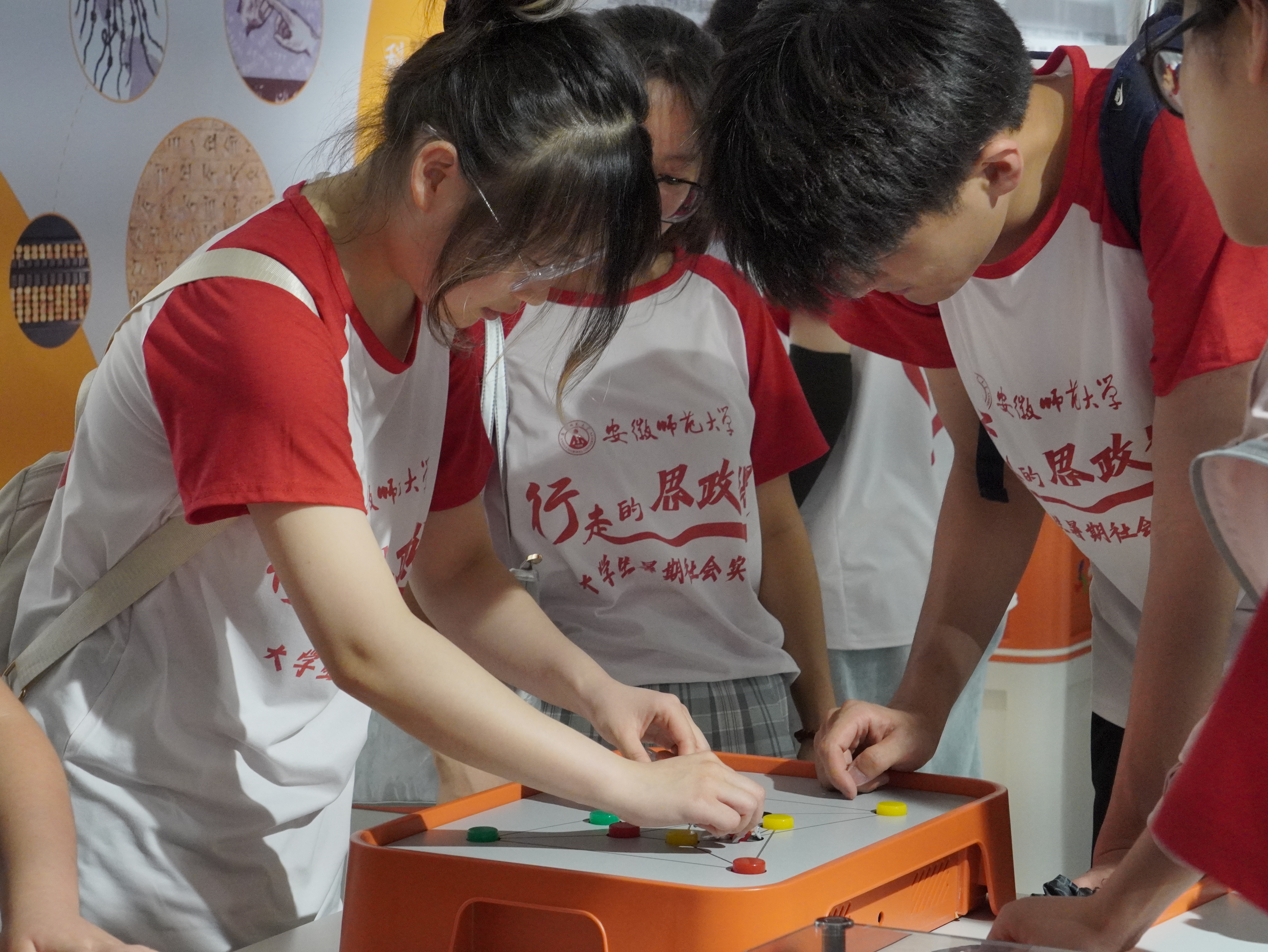带着对历史的思考,团队步入充满现代气息的太和县科学技术馆。互动体验展区瞬间点燃了队员们的探索热情。在基础科学、智慧生活、生态环保、前沿科技等展区,大家兴致勃勃地参与模拟实验、VR体验、机器人互动等项目,亲身感受科技创新的无穷魅力及其对经济社会发展的深刻影响。科技馆之行,极大地拓宽了队员们的视野,强化了科技兴国意识。